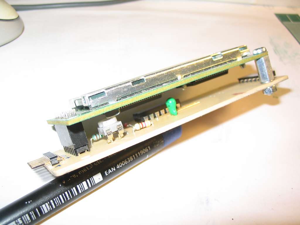 Esetleg alaplap szerelésből visszamaradt műanyag rögzítő. Ha a talpáról a beakasztós részt levágjuk, fel is ragasztható a lemezre, a kártyát a kúpos része fogja meg ... Kép