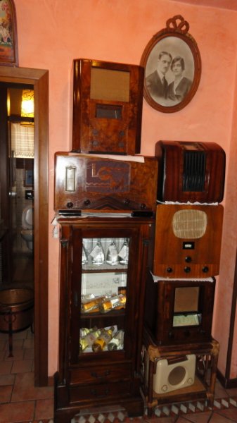 Üdv mindenkinek. Olaszországba jártam és egy kisvendéglőbe lőttem ezeket a képeket, a tulaj engedélyével. Nagyon kedves, kézséges volt, mondott is hozzá valami magyarázatot de nem sokat értettem belőle. A kocsma csak vendégcsalogató dekorációnak tartja a készülékeket, pedig egy igen szép kiállitást is lehetne rendezni belőlük. Gondolom bármelyikünk elfogadna ezekből egyet-kettőt. Az érdekesség még, hogy szinte főhelyen egy Terta 328-as van kirakva ezzel is bizonyított, hogy az 50-es 60-as években még exportképes Európai szinten volt a rádiógyártásunk, aztán jött a KGST, és az egészet átadták a kecskepásztoroknak. De ez már egy másik történet.