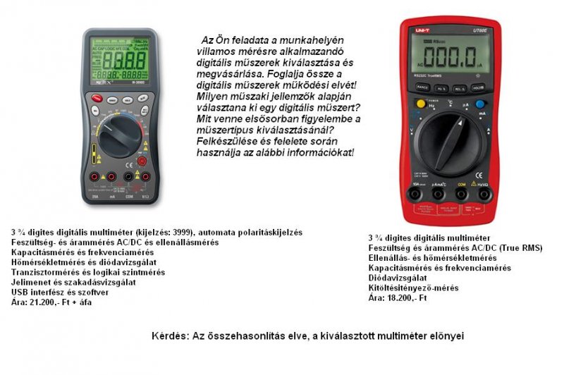 Sziasztok, a tételem egyik részéhez szeretnék segítséget kérni, ami a multiméterről szól. 2 multimétert kellene összehasonlítani, hogy melyik lenne ideálisabb, csak az a gond hogy én nem értek hozzá.Ha valaki letudná írni, hogy melyiket választaná, és miért azt megköszönném!