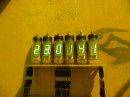 Kipróbáltam magában a csövet. 20V-ról már nappali fényben is jól látszódik, 30V-ról szinte ragyog. Most jön az, hogy túrnom kellene olyan tranyót itthon, ami bírja a 80-90V-ot, és akkor 70V-tal megkergetni a csöveket multiplex üzemmódban.