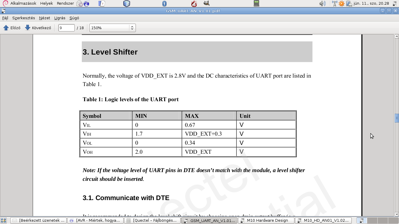 A táplálással kapcsolatos nehézségekkel tisztában voltam, de úgy gondolom, hogy 5V-ról indítva, különböző regulátorokkal (mint pl. a HeStroe-ban kapható LM 317T) a feszültség beállítható először 4.2V-ra, - ez lesz a GSM modulé - majd onnan 3.3V-ra. Vagy ez az elképzelés nem jó? Az viszont már nagy örömmel tölt el, hogy nem kell szintillesztést végeznem a TX-RX lábak között. Kell majd azonban a 3.3V.-os kontroller és a számítógép RS232-es portja között, mert ez is benne van a tervben. 5v-ossal már sikerült megoldanom (MAX232), de 3.3V-ossal még soha nem próbáltam. Ha azonban a kontrollert választanám 5V-osnak, akkor a TX-RX jelekkel lesznek problémáim. Hogyan lehetne ezt a legcélszerűbben?