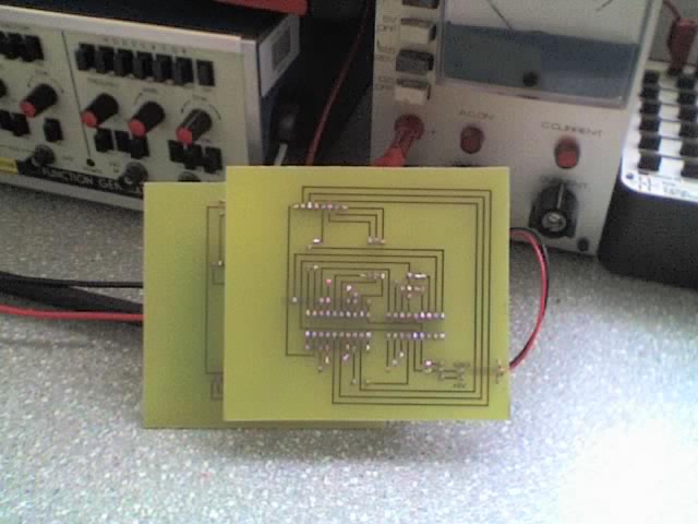 Most kezdem a fotózást, és az első darab nagyon nem lett jó. A felszerelésem: Eredeti p20 (szép sötétzöld lett tőle a nyák - lehet hogy túl vastagon fújtam); kb. 10cm-re tőle letört búrájú HgLI 80, nem új, szép fekete a kisülőcsöve, mielőtt letörtem a búrát, fénye kb. egy 40W-os izzóéval volt egyenlő. Leszorításnak egy kb 3mm vastag üveg. Első nekifutásra 7 percig világítottam (ebben benne van a bemelegedési ideje is a lámpának), utána wolfos előhívóba, eleinte szépen kirajzolódtak a vonalak, de aztán mindenhonnan lejött a fotólakk, csak egy kis darabon maradt meg. Kevesebb mint 1 percig volt az előhívóban. Az a leírás szerint 9:1 arányban volt hígítva.