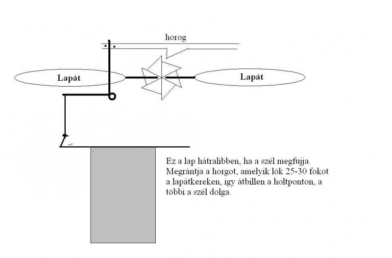 Aszerint, amit leírtál, már készítettél hasonlót, vagy legalábbis láttál. Köszönöm, hogy megosztottad velünk az előbbi információt. Ennek fényében másként gondolkodok, és építek. Van még egy olyan generátorom, mint amilyet feltettem. Azt fogom felszerelni így. Az elektronikát azért így sem lehet megkerülni, mert csak akkor kellene leengedje a meglökő készüléket alaphelyzetbe, ha már a generátor nem termel. Ez azért lenne indokolt, mert a libbenő lapát már alaphelyzetben van, de a szélkerék, tehetetlensége folytán még forog.