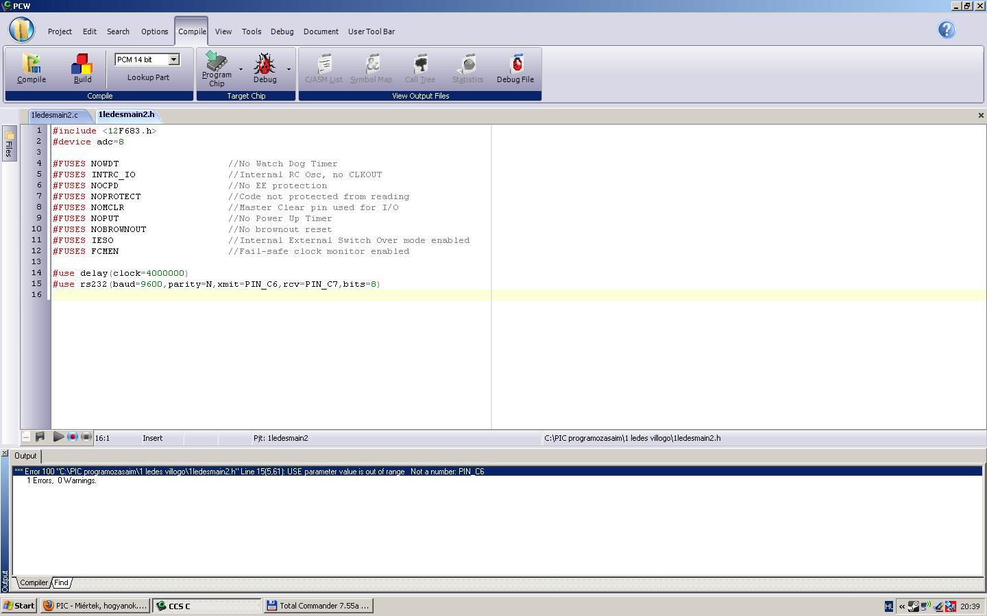 Ez nekem csínai. Mi az a C port? Itt a nagyobb kép. Itt van e : #use rs232(baud=9600,parity=N,xmit=PIN_C6,rcv=PIN_C7,bits=8)