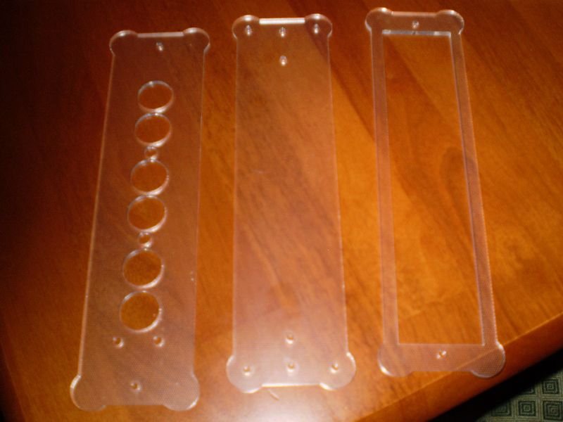 Elkészült a plexi "ház". 3mm vastag víztiszta. Viszont ez egy speciális mintázatú plexi, nagyon apró matt pöttyökkel van "díszítve". Hasonló mint az autó szélvédők pöttyözött széle. De itt vannak a fotók.