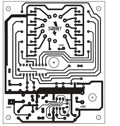 Paneltervezésnél ügyelni, hogy a nagyfeszültségű vezetékek és a kontroller vezetékei között legyen kellő nagyságú szigetelés. A Mule-2 paneljein a 74141 kimeneteit (60 .. 250V is lehet rajtuk) egy un. Guard ring-gel, földre kötött vezetékkel vettem körül. Így, ha valamiért (elpiszkolódás, párásodás) a panel felületén a nagyfeszültségről áram tudna folyni a panelen, az a föld fele kénytelen haladni - nem juthet el a kontroller (és más éryékeny áramkör) veyetékeire...