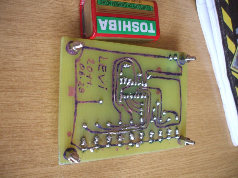 Üdv ! Készítettem egy Bináris számlálót! A kapcsolás egy össze vissza villogóból indult amit a BSS elektronika oldalán találtam! Mivel annak a központi alkatrésze egy 4060 Bináris számláló ,ezert egy kis átalakítással született meg ez a Bináris számláló! Az átalakításban nagyban segített huba ! Díszként megfelel !A sebességet a 100 nF os Kondenzátor segítségével lehet szabályozni illetve az ellenállások variálásával! A fólia oldal nem lett a legszebb de mivel siettem az elkészítéssel ennyire futotta kézzel van berajzolva ! Kicsit a maratásnál maradtak hibák de annyira nem nagy baj!