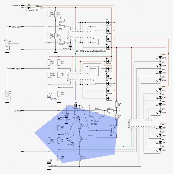 Remélem jó helyre írok. Nem találtam olyan topicot ami kapcsolásirajz-értelmezéssel foglalkozik, ha nem jó, valaki pakolja át a megfelelő helyre. Adva van a következő kapcsolás. Konkrétan a 2ütemü Wartburg műszeréé. A kérdés: az IC6 milyen jelre világitja ki a ledjeit? 0-5 V ra semmi reakció nem volt, pedig elvileg az átfolyásmérő elvileg fordulattal arányos feszültséget ad ki. |