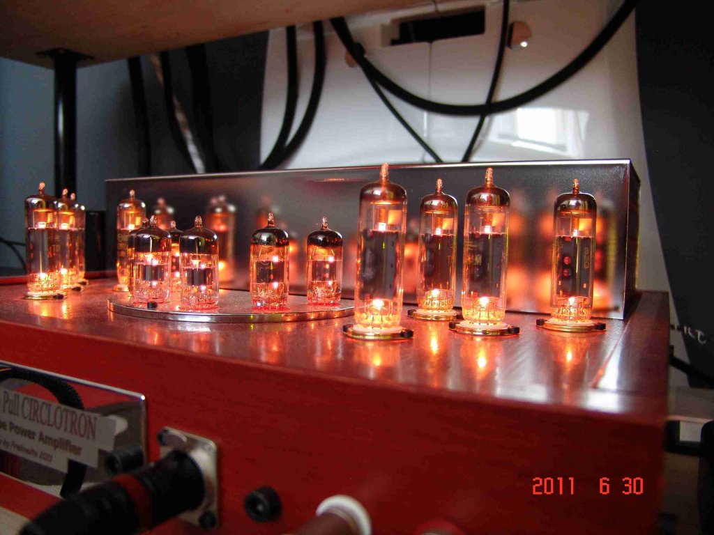 Rajzon külön szerepel a tápegység és az erősítő rész. ECC85-tel vannak meghajtva, ha jól látom, akkor SRPP-ban! Valóban circlotron kapcsolás, hogy miként szól? Nagyon űtősen! Ha valaki kiváncsi a hangjára, az keressen nyugodtan.