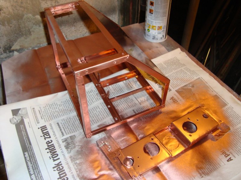 Először a fadoboz készült el praktikus okokból, mivel a fém részeket utólag is tudtam alakítani, ha valami méret nem pontos, de a fadobozt, a fémhez már nehezebb lett volna. Összeállitás után furnéroztam, és alapoztam, fényezve majd később lesz. A fémsasszi 1x1 cm-es szögvas alakra hajlitott horganyzott lemezből (csatornabádog) lett összerakva, összeforrasztva, illetve a sarkokon még szegecselve. A nagy tekercs alapja egy VC papir közepe, vékony prespán lemez borítással. Csak látszólag légmagos, van benne egy csavarral állítható fazékvas is. A kitrafót magam tekertem, a hál. trafó csak át lett alakítva a csőfűtések miatt. Ja a csövek: UCH21, UBL21, UY21, Van a szélen egy kis glimm is, ez jelzi a bekapcsolást, mivel nincs skálaizzó. A készülék KB 15m hosszú padlásantennával szól, kiváló hangerővel hozza a Kossuthot, 120Km-re Solttól. A felső szélső kis gomb a hullámcsapda, a helyi adó kiszűréséhez. A többit képekben.