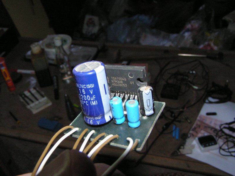 Tegnap délután egy órakor álltam neki sztereó basszus reflex hangsugárzó építésének amit aztán hajnali kettőig megállás nélkül készítettem, majd a hátlap elkészítésével és befejezésével elkészült a csoda. A hangsugárzók oldalanként 35Kg -ot nyomnak és mindössze 80db csavar gondoskodik az egyben tartásukról. A hangszórók kívül belül tömítve vannak, az álló hullámok kialakulásnak megakadályozásnak érdekében tetőtől talpig kivan bélelve szivaccsal. A hangládában egy 100W -os SAL hangszóró gondoskodik a gazdija kényeztetéséről. Nem ér fújolni! ![]() Az erősítő amiről üzemel (még nem végleges verzió) egy 2x11W(!) -os jószág. Egyszerű integrált áramkörös duo blokk végfokozatról van szó (Ami közel 25 éves nem tudom pontosan, persze japán micsubicsi kreálmányról van szó), ami hídba van kötve így adva le azt a szörnyű 11W -ot majd ezt duplázva 22W -os összteljesítményt. Ezt azért írom le, mert rendkívül meglepődtem a hangján, továbbá hogy milyen erősen tud megnyilvánulni a mély tartományban. Ekkor határoztam el, hogy akkor ezt hozzácsapom. Az erősítőről még képet nem rakok fel, mert erősen tesztpados verzió, a bemenetére még hiányol egy impedancia illesztő fokozatot, elektronikus úton működő analóg csatorna választót továbbá egy sztereó hangerő szabályzót ami szintén elektronikus úton vezérelhető (nem digitális).