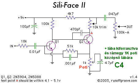 Potmétercserét nem próbáltam, tranzisztort szerintem helyettesítheted(a rajzon jelzettet már én is alig kaptam), torzítás, alapzaj füllel alig érzékelhetó, szép tisztán szól, csak keverőt ne köss hozzá, mert akkor túl lesz vezérelve.