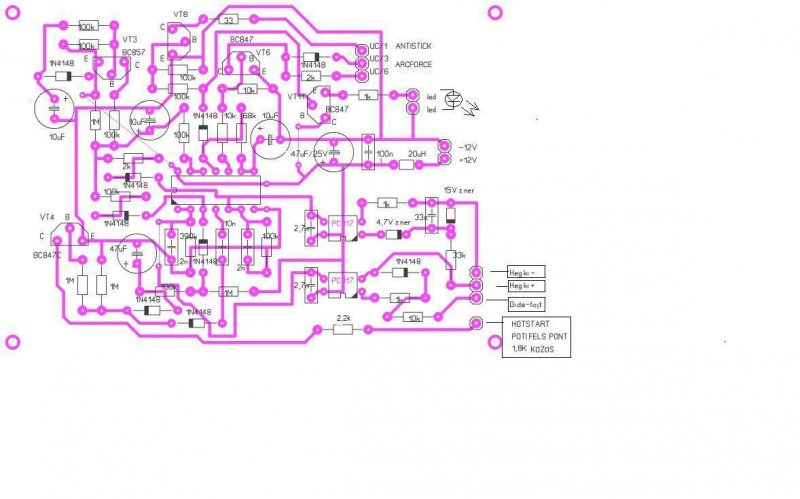 Kérésed parancs! Anno még Tubi56 (Sanyi) barátommal kezdtük összekalapálni.Ő az egyik én a másik felét találtam meg s abból alkottuk a mellékletben szereplő kapcsolást (fólia rajzolat) elhagyva az eredeti kapcsolásból a felesleget.Én ki is próbáltam s írtam is róla akkoriban.Összehasonlítani a Colttal nem tudom,azt nem építettem meg mert a 4 gépből itthon van 3,mind működik,20 rongyért nem adom el inkább legyen talonban,egy 5. felesleges lenne.Azon csodálkozom,hogy dara (Sanyi) barátom sem emlékszik rá,vagy mégis!?