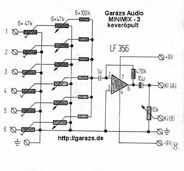 +-12V ? Ha a műveleti erősítő bírja nincs gond. 1 tanács én bennék a bemenetekre és a kimentre sorba egy 1µF kondit, így elválasztod a keverőt DC szinten a többi hozzá kötött dologtól !