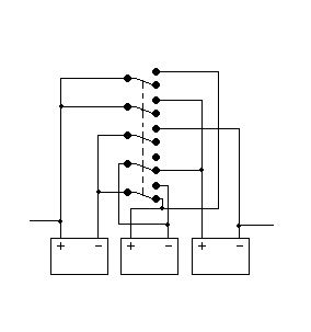 Három akkumulátort lehet-e egy vagy több kapcsoló segítségével úgy összekötni, hogy a kapcsoló(k) egyik állása esetén párhuzamosan, a másik állása esetén sorosan legyenek kötve? Persze ha az akkuk minden sarujára kapcsolót szerelek, aztán végigzongorázok rajta a megfelelőek bekapcsolásával akkor működni, de valami egyszerűbb ügyes kapcsolás létezik erre?