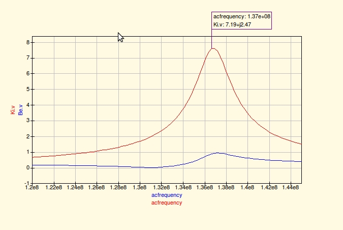 Sajnos merni nem tudok megfeleloen, es a probak olyanok amilyenek. Viszont nincs rossz tapasztalatom a megcsapolassal sincs. Annyira nem keskeny a sav a valosagban hogy a megcsapolas valtoztatasabol szarmazo frekvencia elhuzas szamitana. Kapacitiv hangolassal viszont sokat szenvedtem. Elegge problemas az oszto eltalalasa. Jo lenne valami bevalt, (gyakorlati) atteteli arany. Csinaltam egy szimulalast (valos alkatreszekkel) . L = 126 nH 1.) 55p (GND felol), fent 8p, attetel > 8. f0 = 137 MHz 2.) 100p, 7.6p, attetel > 14, f0 = 137 MHz 3.) 33p, 8.5p, attetel > 5, f0 = 137 MHz Lathato hogy a felso trimmert milyen kicsi tartomanyban kell hangolni. Viszont a viszonylag nagy savszellesseg miatt eszre sem vevodik a valtozas. Az alsot meg viszonylag nagy tartomanyban hogy valtozzon az attetel. (Veszteseg szempontjabol, ugy gondolom, hogy a kapacitiv osztonal kevesebb lehet a veszteseg, mert nincs magneses terbol szarmazo veszteseg)