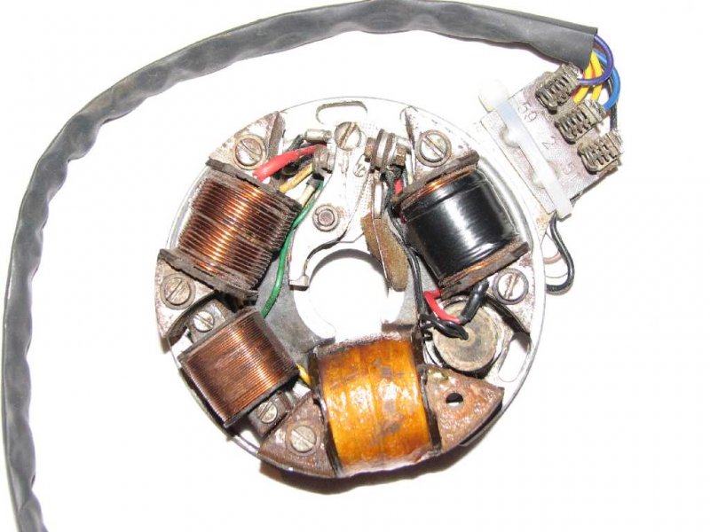 A neten fellelhető doksik alapján a Te motorodban generátoros gyújtás van. Nekem a TL250-es szériához van netről letöltött komplett gépkönyvem, ebből másoltam ki a motor kapcsolási rajzát, illetve lerajzoltam a gyújtásalaplap kapcsolási rajzát is. A generátoros gyújtásalaplapról is küldök egy képet: a gyújtótekercs a legvastagabb és az mindig szigetelt, a töltő tekercs a legkisebb méretű, a maradék kettő a világításé. A sorkapocs 2. kivezetése a megszakító, ami a gyújtás levételekor testre lesz kötve, így nem lesz szikra. Az 51. a világító tekercs, az 59. a töltőtekercs kivezetése (a lámpafejben fordítva van rajzolva a dióda). A világítási és a gyújtótekercs primer ellenállása néhány tized Ohm, a szekunderé kOhm-os nagyságrendű. A gyújtó és a világítótekercsek esetén is egyik kivezetés a testelés, ami a vasmag aljára van felforrasztva. A közösítések a mellékelt rajz szerint vannak kialakítva. Először a gyújtás leállítást és a megszakító működését ellenőrizd, ezt akár próbalámpával is megteheted. Ha továbbra sincs gyújtásod, próbáld meg a lendkerék küllöi között benyúlva lekötni a gyári kondit és kösd be az új kondit a sorkapocs 2 . kivezetése és a test közé. Ha így sem megy, akkor a gyújtótrafóval vagy a gyújtás kivezető szigetelőjével lehet a gond. A gyújtótrafó szekunder kivezetése az alaplap alján van, ez egy T alakú sárgaréz lemez, ez is le lehet törve. A talált linkeket elküldöm privátban.