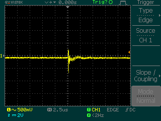 Ma próbálkoztam, egy 100mH-is tekercsre kötöttem a szkópot, és a saját 333 menetesemre 5.6V-t, és tekercset mozgatva ilyet kaptam: A mellékeltekben látszik. De erősítő-> szűrűre rákapcsolva nem akart semmi megjelenni, mitől lehet?