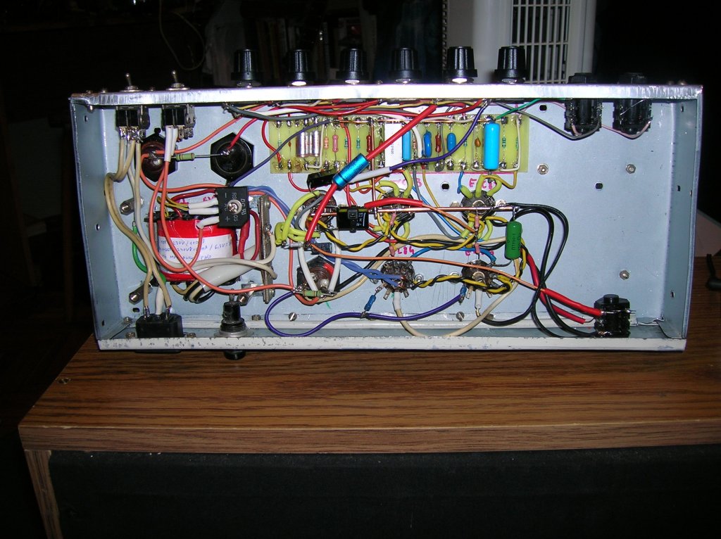A kaszni kész van már vagy 3 hónapja. A külsejét illetően, az egész egy fadobozba lesz beszerelve, ami le lesz bőrözve. A Potikkal nem tudtam mit csinálni, ezek voltak itthon, és nincs pénz másikat venni. Jelenleg is dolgozm egy Peavey 5150H-n. A 4X12-es ládába lévő hangszórókra gyűjtök most.