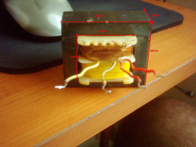 Íme egy kép a trafóról, bocs a minőségért, és melyik adatok kellenek a számításokhoz? talán az "E" közepe?.