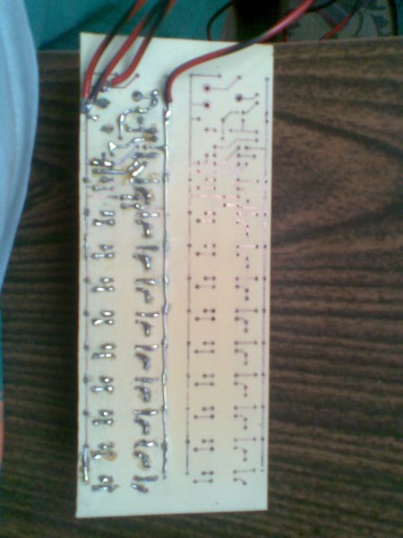 Mikor ra adom a 12V egyen feszt felgyul az egesz led.Ami helyett mast tettem az a bc549 helyett bc547-et,68K helyett 66k-t,18k helyett 15k-t hja es a bat85 helyett 1n4148-at.Ha valakinek valami otlete akkor legyen szives segiteni ![]() Koszonom elore is