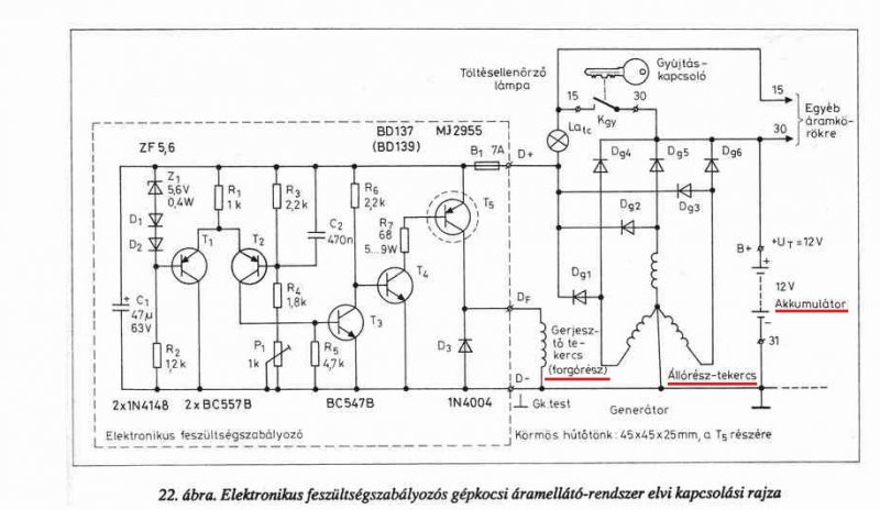 Van egy traktorom van benne egy generátor, ami leégett de nem ez a baj... újra lett tekercselve tökéletesen működik, DE a fesszabályzó is vele ment... venni nagyon nagyon drága ezért szeretném inkább megépíteni. Az akksit kellene, hogy töltse(12v 40Ah), meg 2 db. párhuzamosan kötött 12v-os 21wattos izzót (de az izzókat ritkán használnám, hogy este visszataláljak). vázlatot csatolok a generátor (vagy dinamó??) tekercs és mágnes elhelyezkedéséről. Ha kell lemérem a fordulatonkénti feszt is. kb. 13v- ra beállítottam a fordulatot és rákötöttem egy 12v 55w-os halogén izzót. probléma nélkül elvitte. Köszönöm a válaszokat!!