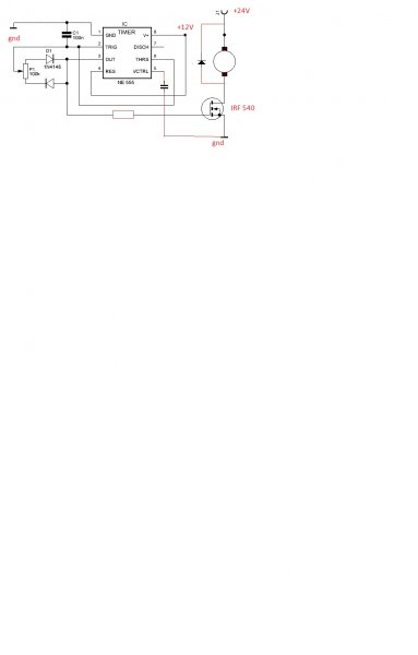 Találtam egy normális pwm kapcsolást ami nem bonyolult, 24V-os 350W-os motorhoz kell, 2 tápellátással, vagyis 24V+12-os stabkocka, itt a kapcsolás, és kicsit változtattam rajta, és az lenne a kérdésem kell-e még változtatni, illetve az ellenállás és a kondi milyen legyen? köszi előre is!