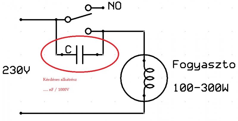Köszi a segítséget! A relé kiválasztásánál mindenképpen a AgNi kontaktussal rendelkező termék jöhet szóba (Finder 40.61.07.024.202). Nagyon kedvező árral és jó paraméterekkel rendelkezik. A kapcsolási teljesítmény egyik körön sem haladja meg a 100-150W -ot, mivel vagy kompakt fénycsövet vagy led-lámpát fogok használni. Való igaz a kezdeti bekapcsolási áram egy kicsit magasabb, mint az üzem közben felvett. Erre viszont bőven túlméretezett (16A) relé lesz a válaszom. A kondenzátorra azért is gondoltam, mert ezzel csökkenthető lenne a kikapcsoláskor keletkező kontaktok közti ívhúzás, ami jelentősen rontja a kontaktusok állapotát, élettartamát (összeégés veszélye). Igaz ezeknél a teljesítményeknél amiket fentebb említettem nem valószínű, hogy be fog következni. Amennyiben esetleg van javaslat az alábbi kondenzátor típusára illetve kapacitására, akkor azt szívesen veszem. Üdv : Gyula