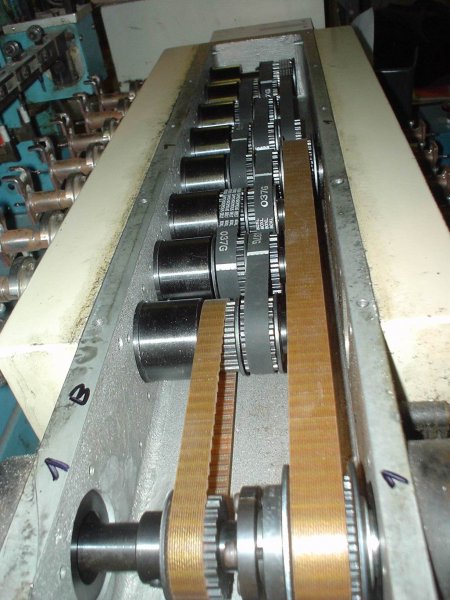 Közben rájöttem, hogy mi a baj. Ez tanulságos lehet mindenkinek. A képen is látszik, hogy kétféle szíj van. Utánnanéztem és az egyik fogosztása 5mm (hosszabb,5T 360) a másiké pedig 5.08(80xl). Így azon a negyven fogon máris hosszab 3,2mm-rel. Ezért lóg. Ezért mondom azt, hogy nem szabad mindenkinek mindent elhinni, mert csak elviszik az embert.