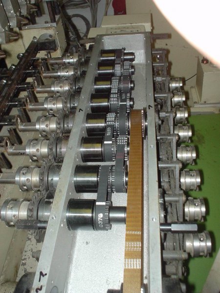 Lazán a szij nem igazán tud pozicionálni és ahogy a helyére csuszik az okozza a rezonanciát . Nagyon figyelni kel a fog profilra ( azt hiszem ide a sinuszos lenne a jo esetleg a szimetrikus trapét ( sima T-s ) . Sokat ront a helyzeten az a viszonylag hosszu szij ( képzeld el ha az kicsit laza és elkezd csattogni ilyen sebességen . Az egész szerkezet merevsége , rögzitése is nagyon fontos hogy a kissebb balansz problémákat " el nyelje " . Mire használják ezt a sok görgöt , valami továbbitásra vagy egyengetésre ?