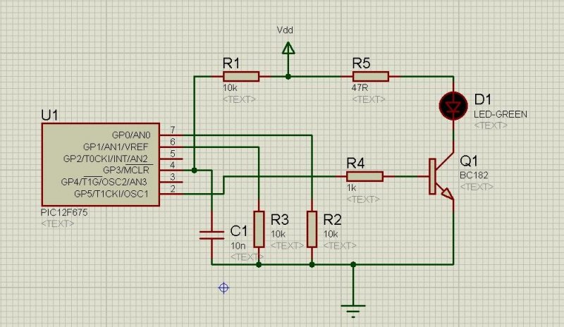 Segítségeteket szeretném kérni! Egy 12F675-el szeretnék egy egyszerű áramkört megvalósítani. Probléma az, hogy a GP5-öt kimenetnek szeretném használni, de ha a programban állítgatom a GPIO2 bitet, a kimeneten semmi nem változik. A kimenet egy 1k-s ellenálláson keresztül egy BC182 bázisára van kötve. Multiméterrel mérve 0.5 V körüli feszültség van, és mintha lebegne, mert ha kézzel hozzáérek a PIC lábához, akkor a tranzisztor kollektoránál a LED (később ide egy telefonból kiszedett vibramotort kötnék, ezért van a tranzisztor) fényereje változik annak függvényében, hogy mihez érek még hozzá az áramkörben. Próbaképp most mindhárom kimenetet (GP2,4,5) kapcsolgatom a programból, multiméterrel a GP2 –n látszik hogy rendesen működik, a GP4 viszont szintén nem, kb. Vdd-t mérek rajta folyamatosan, de lehet hogy az is lebeg, nem próbáltam fel-le húzni ellenállással. Már többször is átnéztem mindent, de nem jövök rá mi a hiba. Remélem nem a PIC lába ment tönkre (teljesen új volt), mert szívesebben javítanék 1-2 sort a programban, minthogy a nyákot gányolom át a GP2-re. Csatoltam mindent amim van, hogy ne kelljen találgatni mit-hogy csináltam, a nyákterven a tápnál van egy elektrolit kondenzátor, azt kivettem mert túl nagy volt az értéke és a pickit2 Vdd hibára panaszkodott. Még annyi, hogy MPLAB SIM-ben a watch-ban látszik hogy billegnek a bitek a GPIO-ban rendesen, és Proteus-ban is működőképesnek látszik a GP5-tel is. Előre is köszönöm a válaszokat! Gábor Idézet: „A 100 nF-os kondiról anyit, hogy rendben, de én nem hiszek benne. Különben ilyen frekvencián nem számít, hogy mekkora távolságra és mekkora lábbal van betéve, amiről ti beszéltek, az 10 GHz-nél van és ezt fenntartom... Ezen ne vitázzunk, ha lehet!” Rendben, ne vitazzunk -- tegyel ra egy scope-ot inkabb. Idézet: „Vdd, Vpp, Vcc, Vss: nekem meglehetősen zavaros volt mindig is. Minek ennyi elnevezés? A kapcsoláson Vdd-ről és Vss-ről van szó, az IcProgban Vcc van, itt meg most Vpp... Kicsit sok ez így.” Vcc a regi bipolaris tranzisztorok idejebol szarmazik: V(collector) Vee szinten bipolarisoknal a fold: V(emitter) Vdd a FET-es tranzisztoroknal szokas: V(drain) Vss FET-eknel a fold: V(source) Vpp: PIC-nel a programozashoz szukseges feszultseget jelolik: V(programming) Ezek csak jelolesek, a 4066-odnal minden bizonnyal Vcc / Vee -vel talalkozhatsz, meglehet nem a Magyar irodalomban.