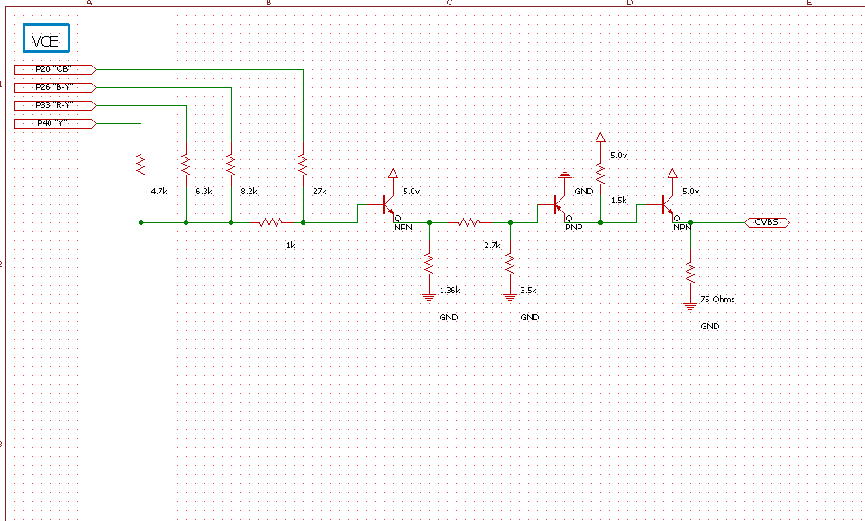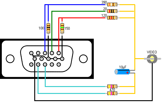 Mivel a lejátszón van hozzáférés, a kompoziton kívül (ami rossz) komponens kimenethez, amit át kell alakítanom kompozit jellé. Például egy áramkörrel, ez olyasmi mint a csatolt ypbpr_RGB.jpg képen látszik, ehhez lehetne kapcsolni egy olyat ami RGB-ből csinál kompozitot . ez olyasmi lehet, mint a másik képen lévő áramkör, csak annyi a baj, hogy ez vga jelet vár ahol a szinkron jelek külön hozzáférhetőek. Vagyis ez még a ypbpr jelből ki kell nyerni. De találtam fapados megoldást is, érdekes lehet olyannak aki szakmai szemmel nézi a videojel technikát