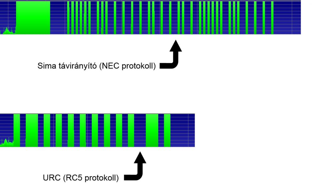 Hangkártyával "felvettem" egy sima távirányító, és egy univerzális távirányító jeleit.