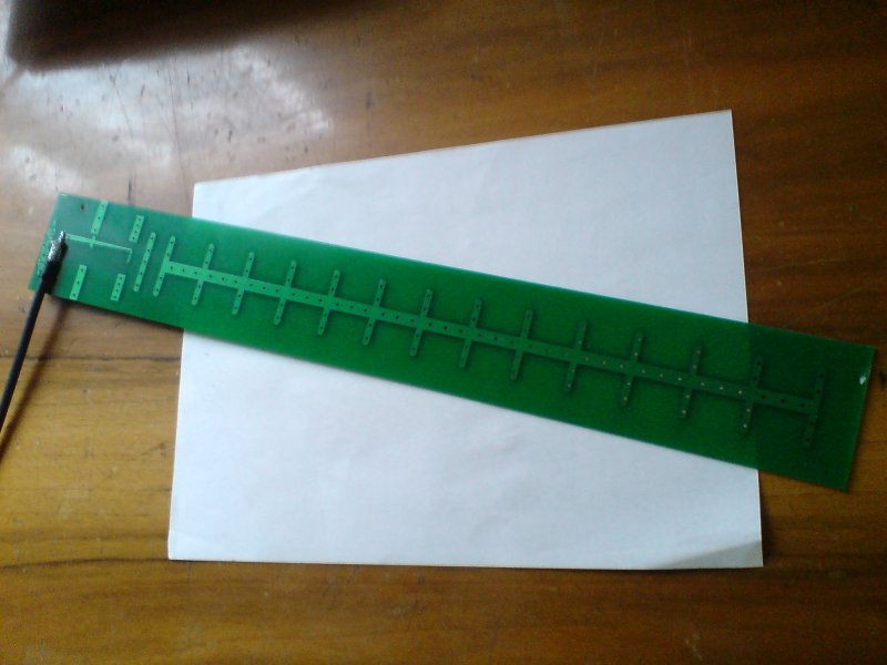 Onnan tudom, hogy az a háromszög alakú rézlemezes megoldás nem működött, amit meg megépítettem az működik. Mindkét oldalon ilyen antenna van, az áthidalt távolság bő 1 km.