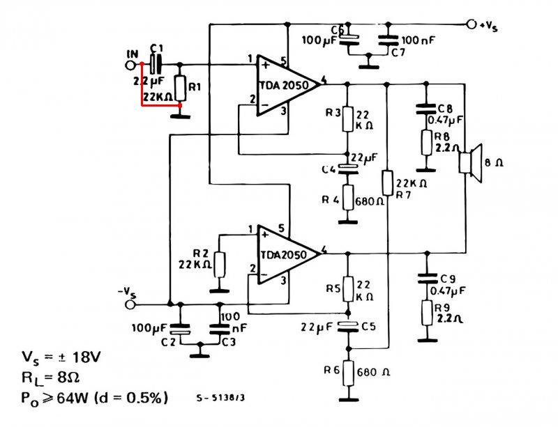 A TDA2050 híd bemenetére adj jelet, kiderül melyik egységben kell a hibát keresni.