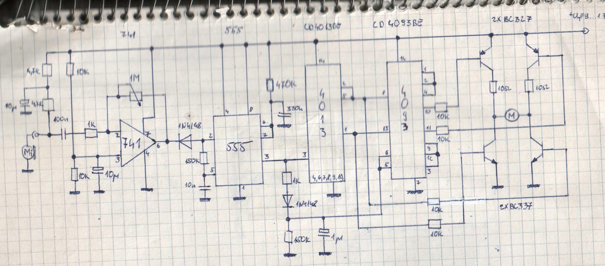itt egy jo kapcsolás. én nem ezt használom, de egy nagyon hasonlot csak más ic vel. nekem 4013 és 4011 van benne. egyébként a 4011 3,6,12 es lábára lehet kötni egy tranyot ami tud vezérelni egy plusz motort. (swing, shark)