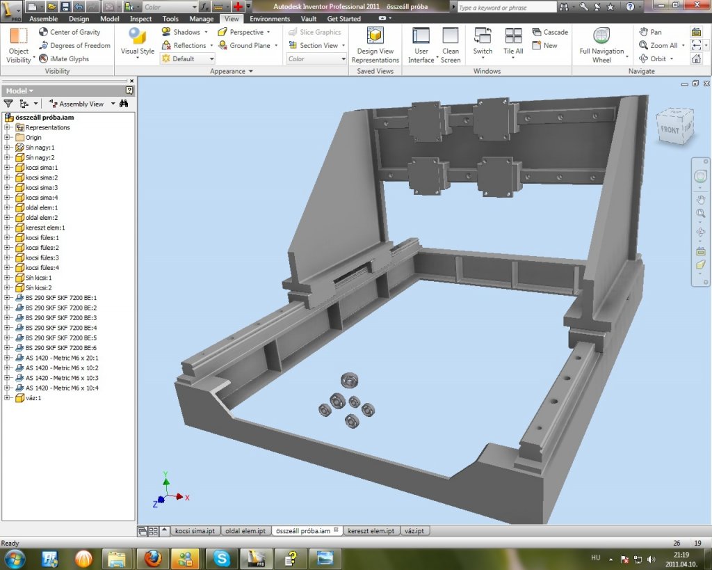 Oldalfal, azaz a lábak gyengék lesznek, kellene még merevítés. Ha mozgó asztalost terveznél, akkor az összes aluprofilt megspórolnád a híd kivételével