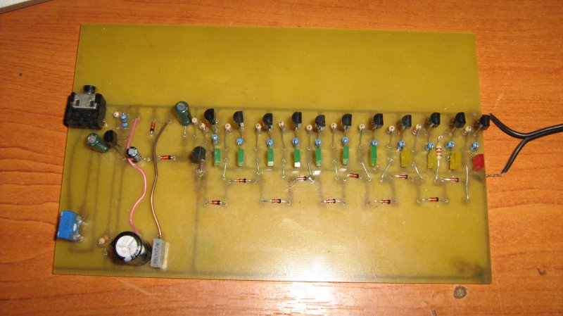 Úgy látom, a rajz szerinti BC549C tranzisztornál kellett javítani, de sajnos a fotóból nem tudom kivenni, hogy ez sikerült-e rendesen.