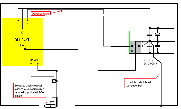 Jaj jaj ez kezd komplikálni engem ! Ezek az összeköttetések és attól felek hogy egyet füstöl ! Azért is nem építek stereot egyenlőre egyszer menjen ez és akkor meg készítek egy társat hozza! De az mar biztos hogy nekem ez mar nem fog menni elég elszánt erősítő építő vagyok de ez mar megterhel !