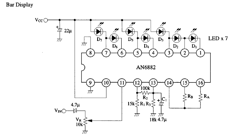 Bocs! Kapcsolási rajzot az adatlapon találsz, két félét is BAR (vonal) és DOT (pont) kijelzéshez.