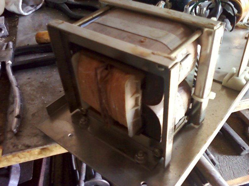 Az lenne a javaslatom, hogy a házba tegyél egy jól méretezett toroidot. Fényképezd le légyszíves a belét. A réz keresztmetszetek is sokat elárulnának.