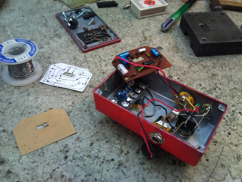Végre volt egy kis időm, és termeltem! DALLAS RangeMaster mod. megépítése, retro kivitelben, volt a cél! Annó bemértem szkóppal a gitáromat, és a "G"-től felfele rohamosan csökkent, majd k.b. fele jelszint volt az "E"-hez képest! Tényleg szükség lehet a treble boosterre! A Dallas-ost mindenkinek ajánlom, főleg így Ge-tranyóval, 5-ös gitárhangerőig szépen erősít, de, ha odatépem 10-re, olyan jó kis overdrive-os hanja lesz, hogy szakad minden! Ím néhány kép , ízelítőnek: Pityu
