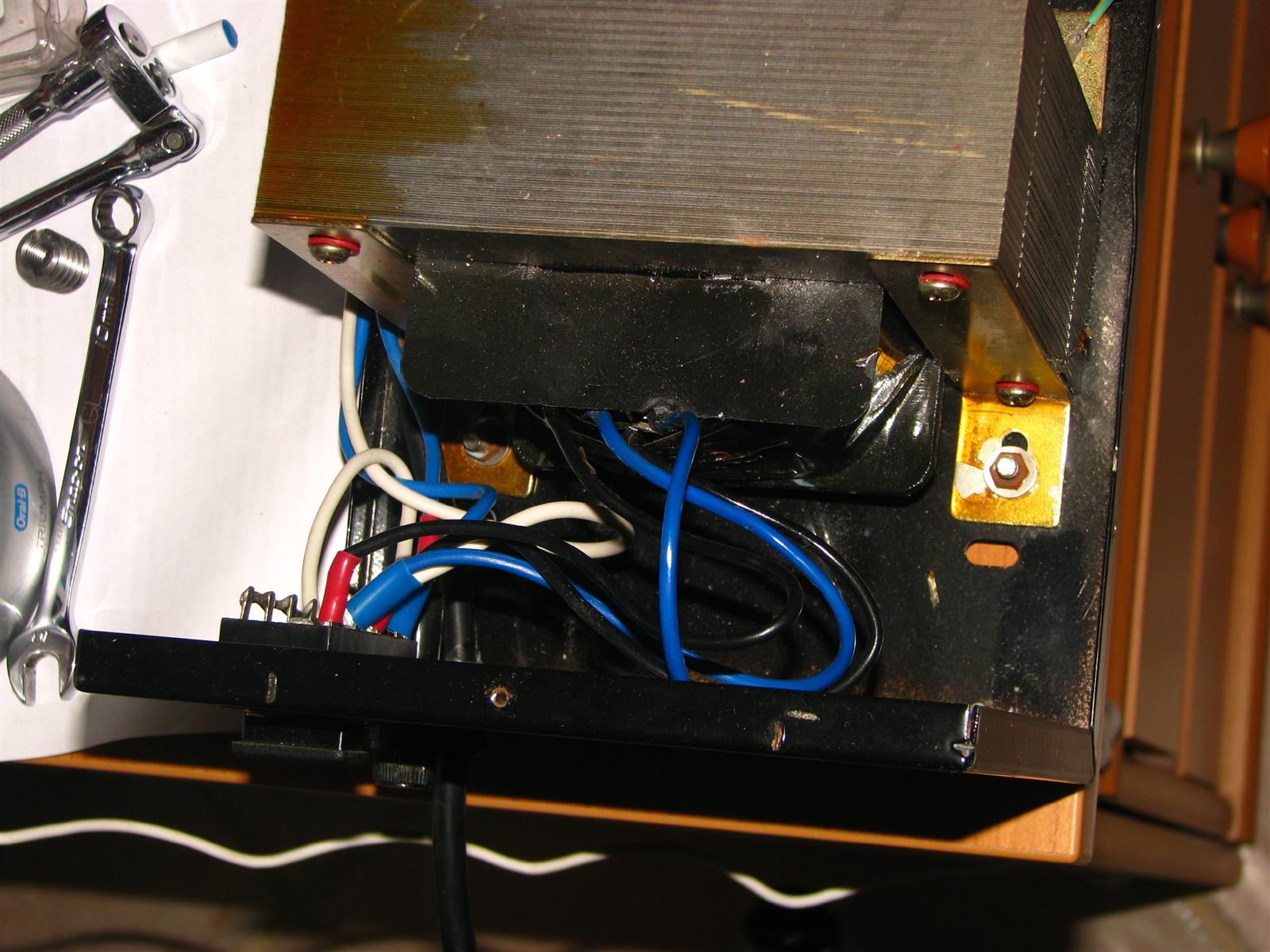 Az lenne a javaslatom, hogy a házba tegyél egy jól méretezett toroidot. Fényképezd le légyszíves a belét. A réz keresztmetszetek is sokat elárulnának.