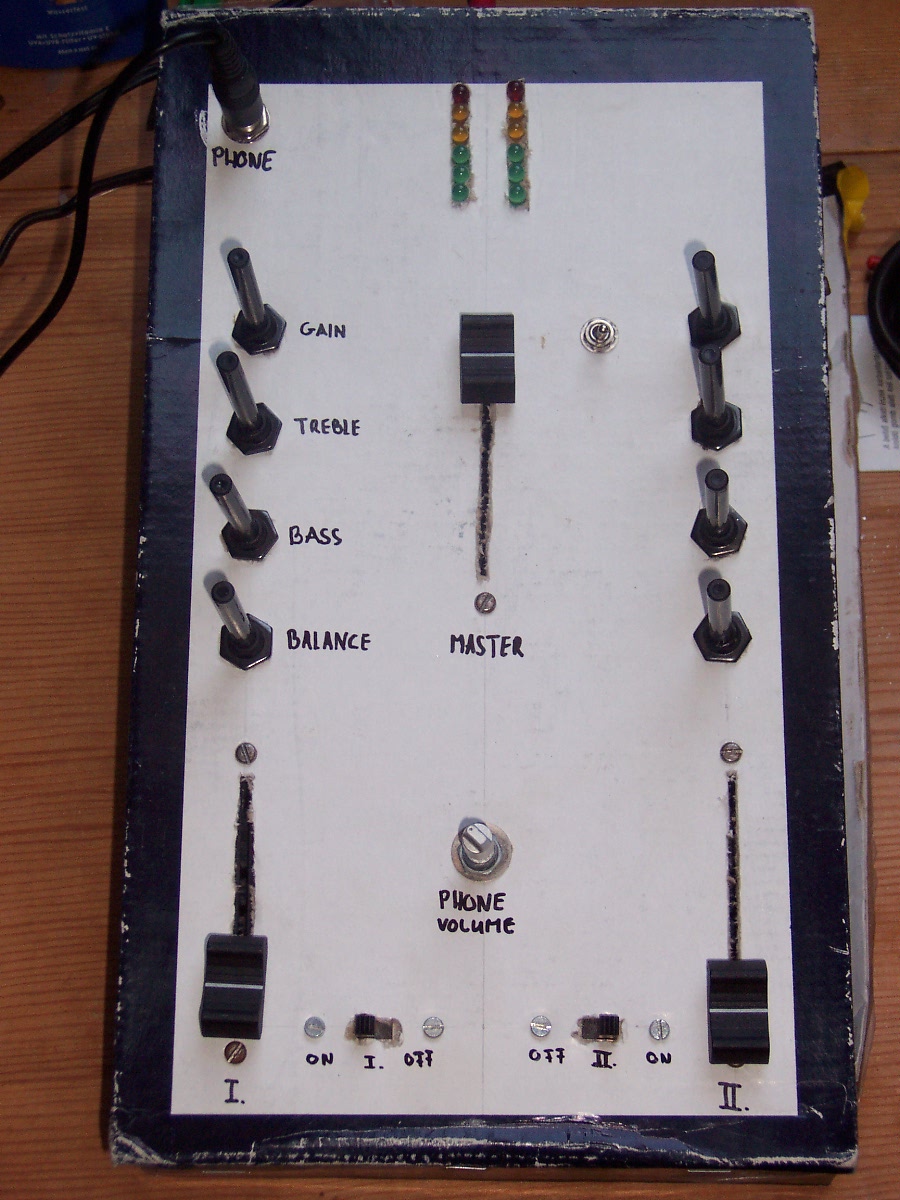 Sajnos mindezt én is tudom, de én nem tudom megmunkálni rendesen a fémet, mert nincsenek eszközeim hozzá, és azt sem tudom, hogy hol lehetne megcsináltatni, ezért maradt a cipősdoboz addig, amíg nem találok ki valami megoldást. A fénypult pedig két koleszban kidobott fiókba lett beleépítve, mivel ott csak ezt a megoldást tudtam kitalálni..