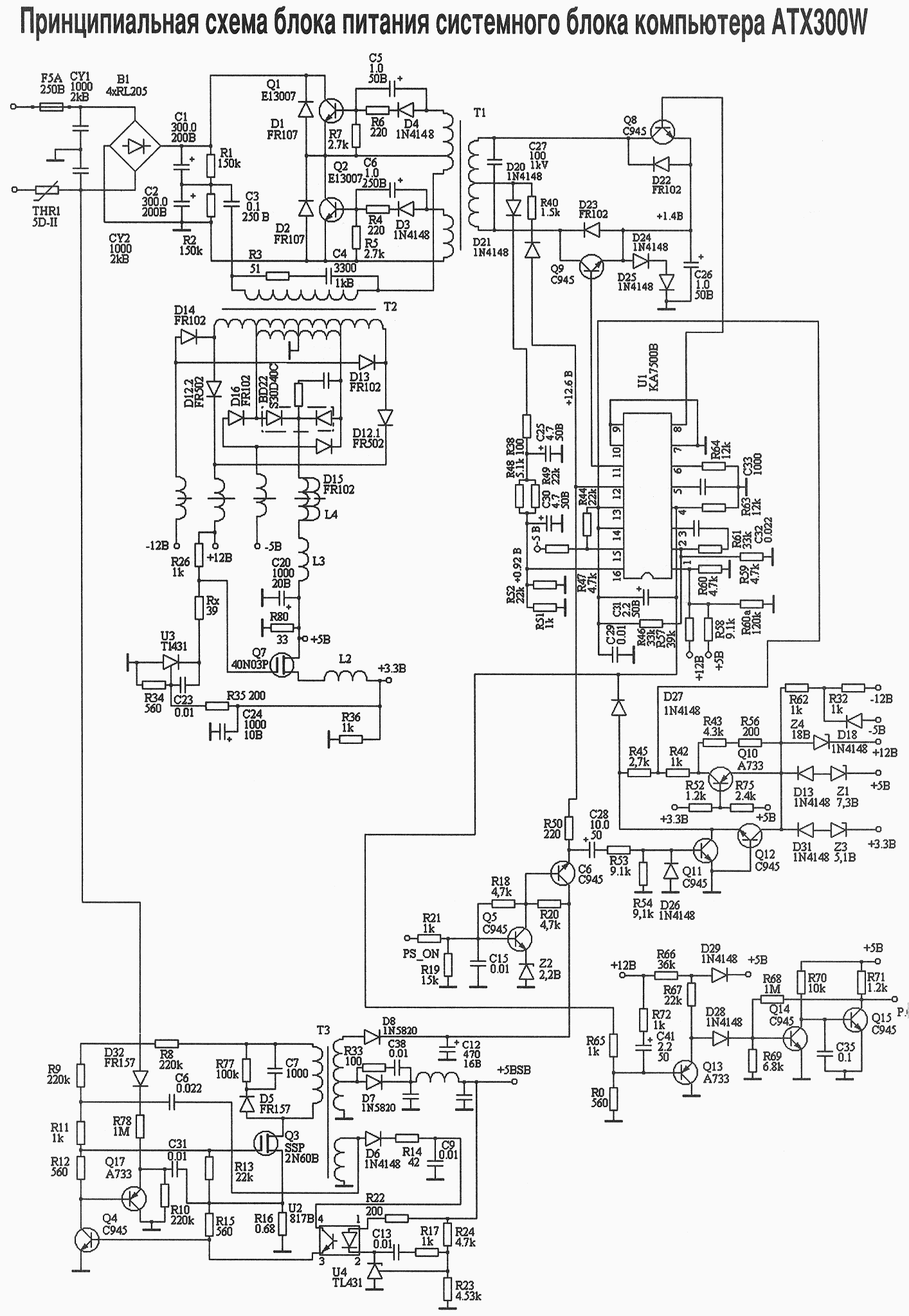 Két oldallal előrébb találsz rajzot. A főtrafó kimenetéről minden alkatrészt szedj ki a snubber (RC tag) kivételével. Kiemeled a nyákból a trafó szekunderének közepét (mellette lévő vastag sodrat). Megkeresed a trafó két végét (+ és -12V-os ág, egy kettősdióda lógott rajta). Ide teszel gyorsdiódákból egy graetz-et ami legalább 6A-t elbír. Erre rákötöd a volt +12V-os ág fojtóját és egy 470µF legalább 63V-os kondit. Az így kapott negatívot összekötöd a régi test-el. Az IC 1-es lábára akkora osztót teszel hogy 45V-ot kapj a kimeneten. Kezdésnek ennyi.