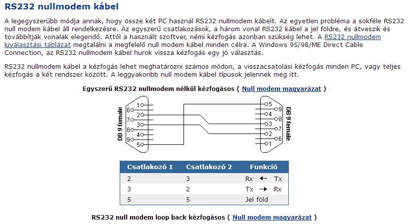 Szia! A csatlakozónál a KOCKA az 1-es láb. Így nem lesz jó a csatlakozó a "gyári" nullmodem kábelhez. ( Lásd mellék. )