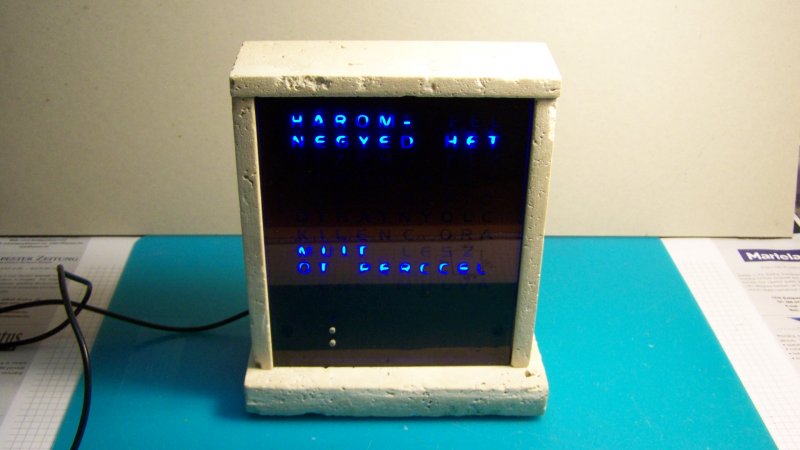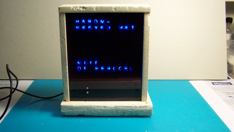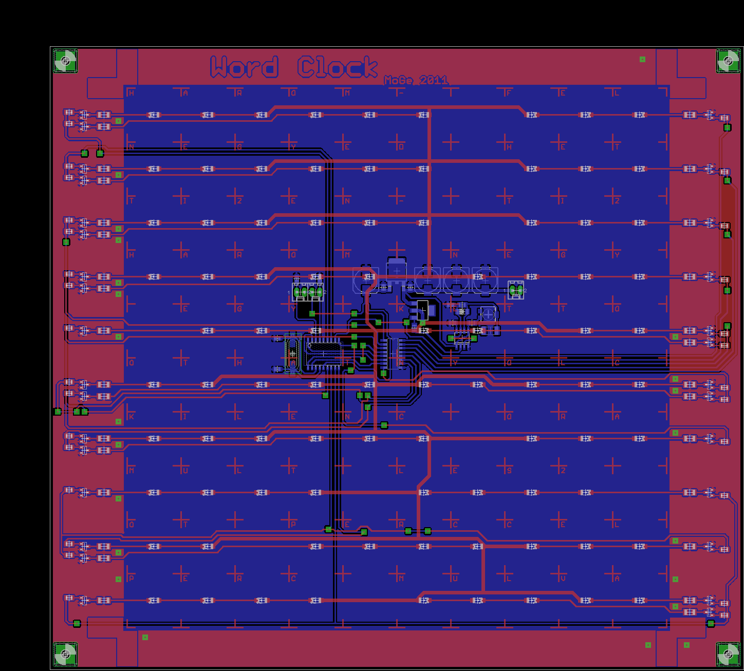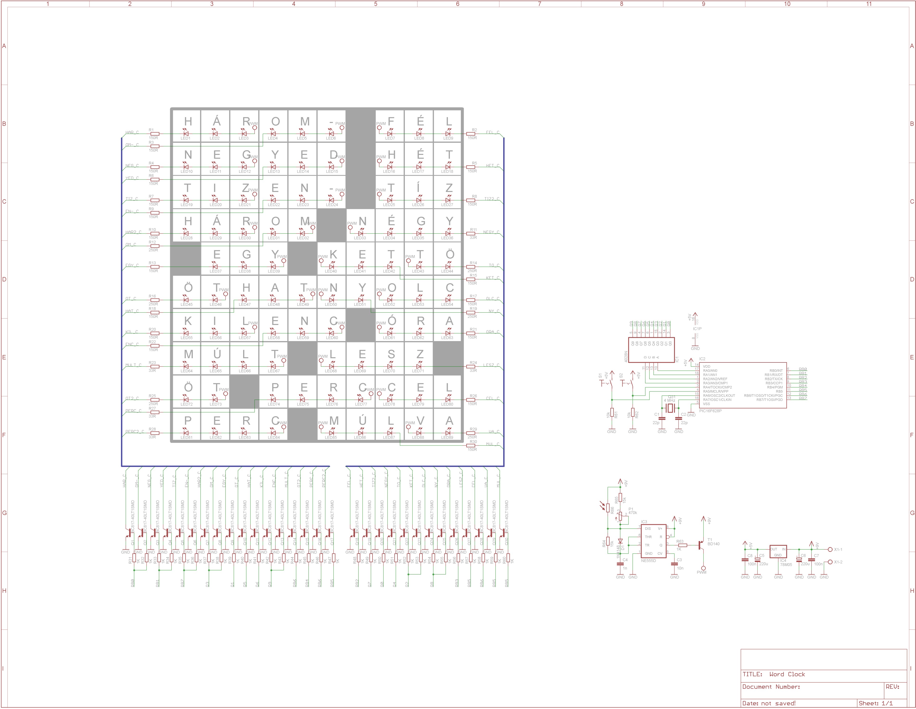 Sajnos a programozáshoz nem igazán értek, csak saját SMD-s nyáktervet csinálok hozzá. Net-ről szereztem egy Word Clock képernyőkímélőt, ami nagyon tetszik, másodperc felbontású, dátumot is mutat, szóval nem kicsi. Egy ilyet jó lenne építeni DCF szinkronnal.