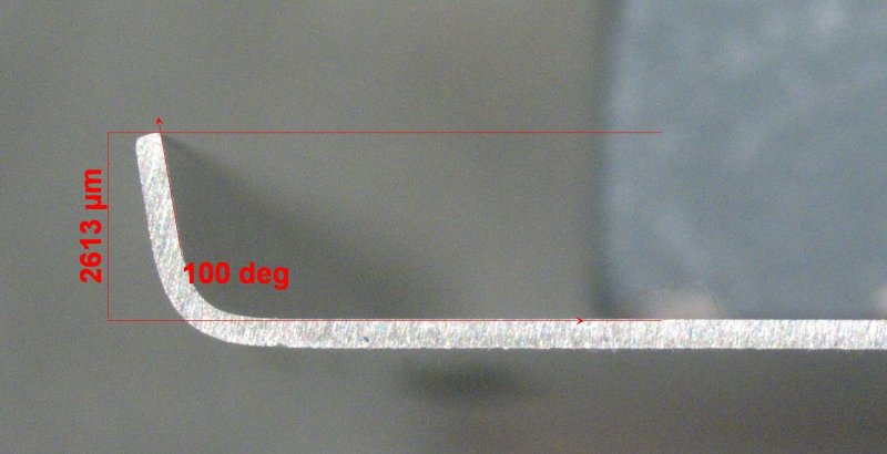 Ha előre lepolírozod tükörsimára a hajlítandó részt (itt vastagságot kell mérni, hogy a polírozott felület minden része egyforma vastag-e), akkor hajlítás után ez a lézeres mérés kivitelezhető. Mert utólagos csiszolás/polírozásnál lehet, hogy sokkal nagyobb hiba lép fel.
