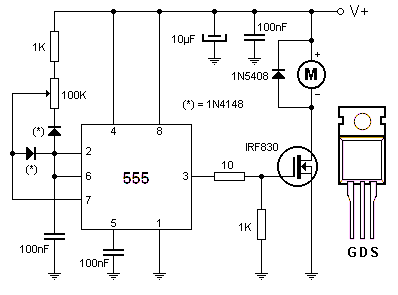 Ha a minimális fordulatszámot szeretnéd állítani, akkor tegyél sorba az 1kohm-al potit. Azzal szabályozhatod. De a feki is változni fog a két poti arányának megfelelően. Vagy építsd meg ezt a kapcsolást, és akkor a poti alatti-feletti ellenállással kedvedre korlátozhatod a minimális-maximális kitöltési tényezőt. üdv! proli007