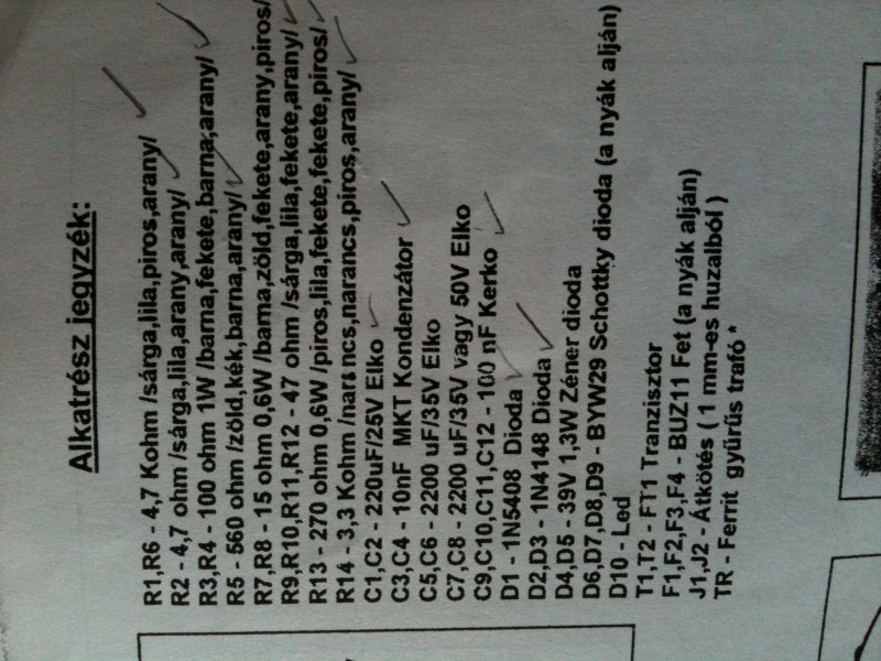 Már mértem, nem jó, elszállt. Itt egy kép az alkatrész listáról.